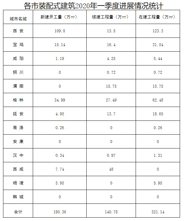 (二)項(xiàng)目建設(shè)。根據(jù)重點(diǎn)項(xiàng)目建設(shè)計(jì)劃及疫情防控等需求,西安市公共衛(wèi)生中心、西安咸陽國際機(jī)場分流檢測中心等工程開工建設(shè)、投入使用。一季度裝配式在建建筑面積共321.14萬平方米,其中新開工180.36萬平方米、續(xù)建140.78萬平方米。(具體情況見附表)