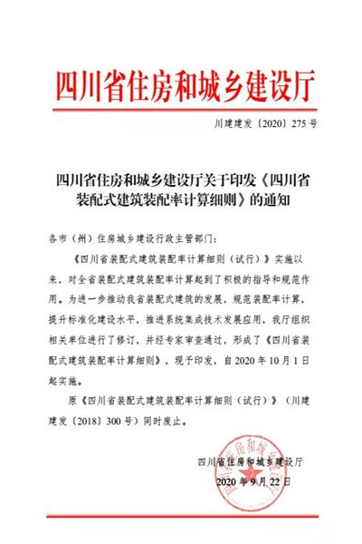 原《四川省裝配式建筑裝配率計(jì)算細(xì)則(試行)》(川建建發(fā)〔 2018〕 300 號(hào))同時(shí)廢止。